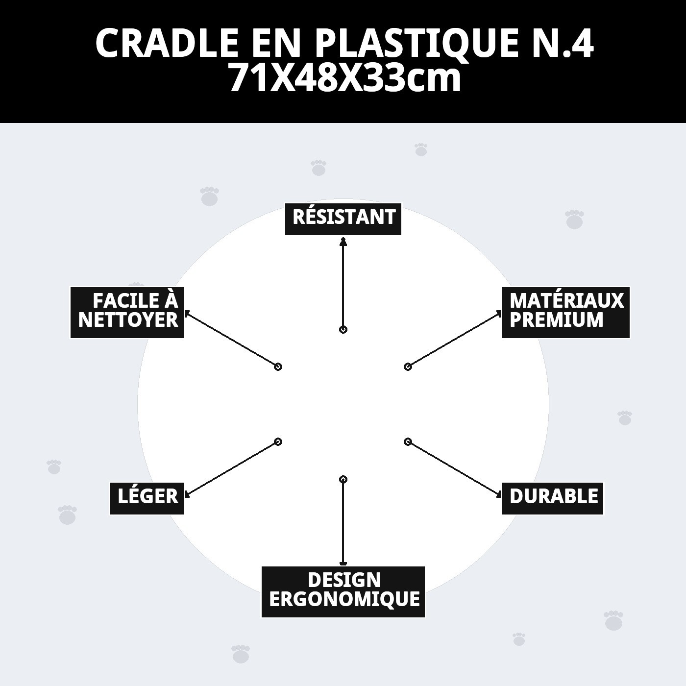Le lit en plastique N.4 est fabriqué avec des matériaux de haute qualité, garantissant sa durabilité et sa résistance. Avec des dimensions de 71x48x33 cm, il est parfait pour les chiens et les chats de taille moyenne. Son design permet à votre animal de se sentir en sécurité et protégé, comme s'il était dans sa propre petite forteresse. De plus, le plastique est facile à nettoyer, ce qui est un atout pour tout propriétaire d'animaux qui sait combien il est important de maintenir l'hygiène.