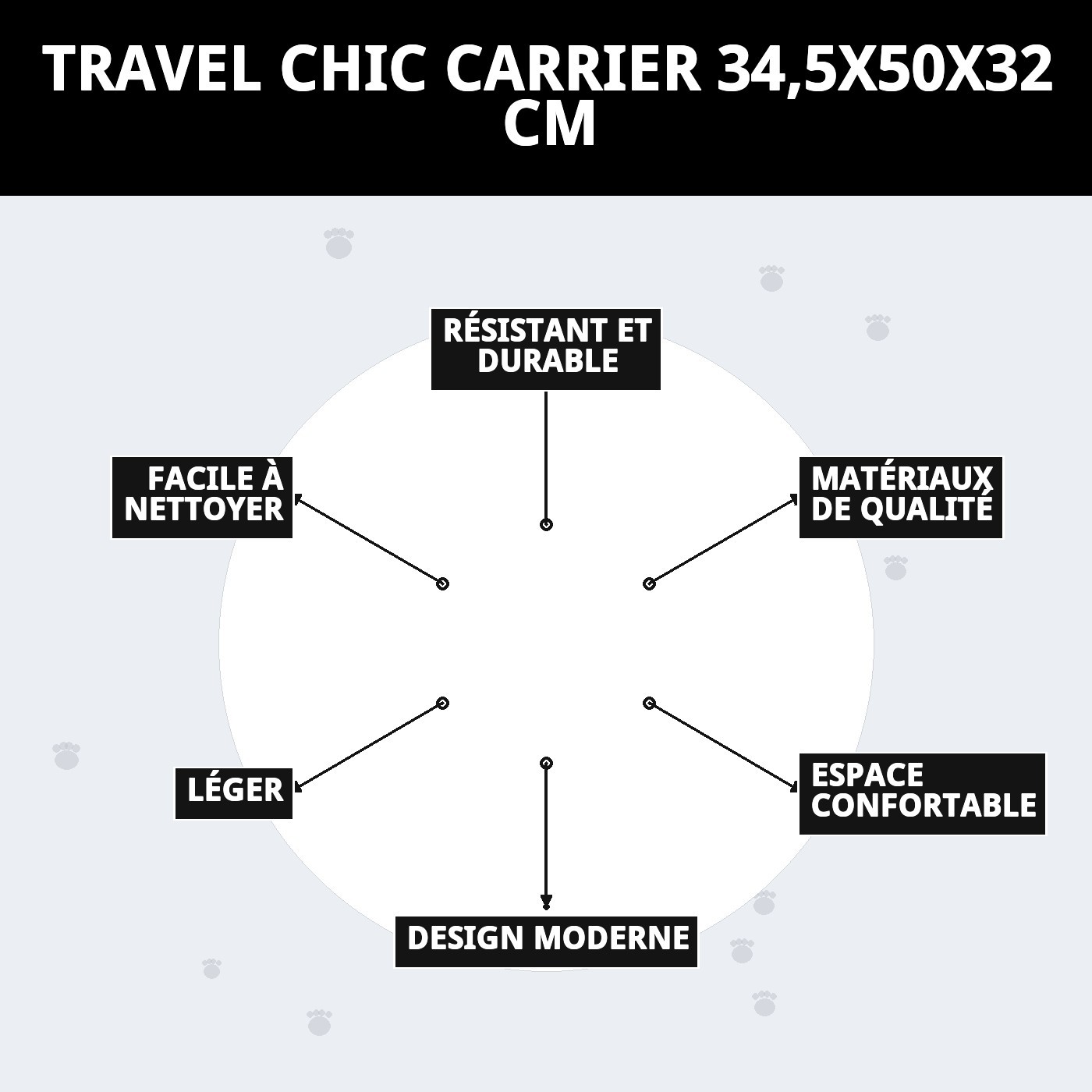 Si vous recherchez un transporteur Travel Chic 34,5x50x32 cm, vous avez trouvé l'option parfaite. Il allie design, confort et fonctionnalité, ce qui en fait le choix idéal pour tout amoureux des animaux. Voyager avec votre ami à fourrure n'a jamais été aussi facile et stylé.