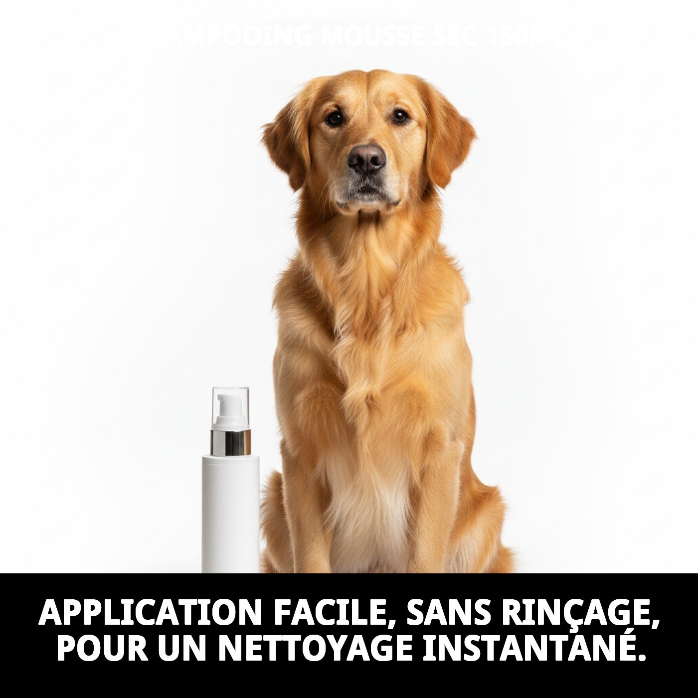 Le shampoing mousse sec est une solution innovante pour l'hygiène de votre animal. Il se présente dans un emballage pratique de 150 ml, idéal à avoir sous la main à tout moment. Ce produit a été conçu pour être appliqué sans rinçage, ce qui en fait une option très pratique. Il suffit de secouer le flacon, d'appliquer en petites doses et de frotter avec une serviette pour sécher. C'est aussi simple que ça !