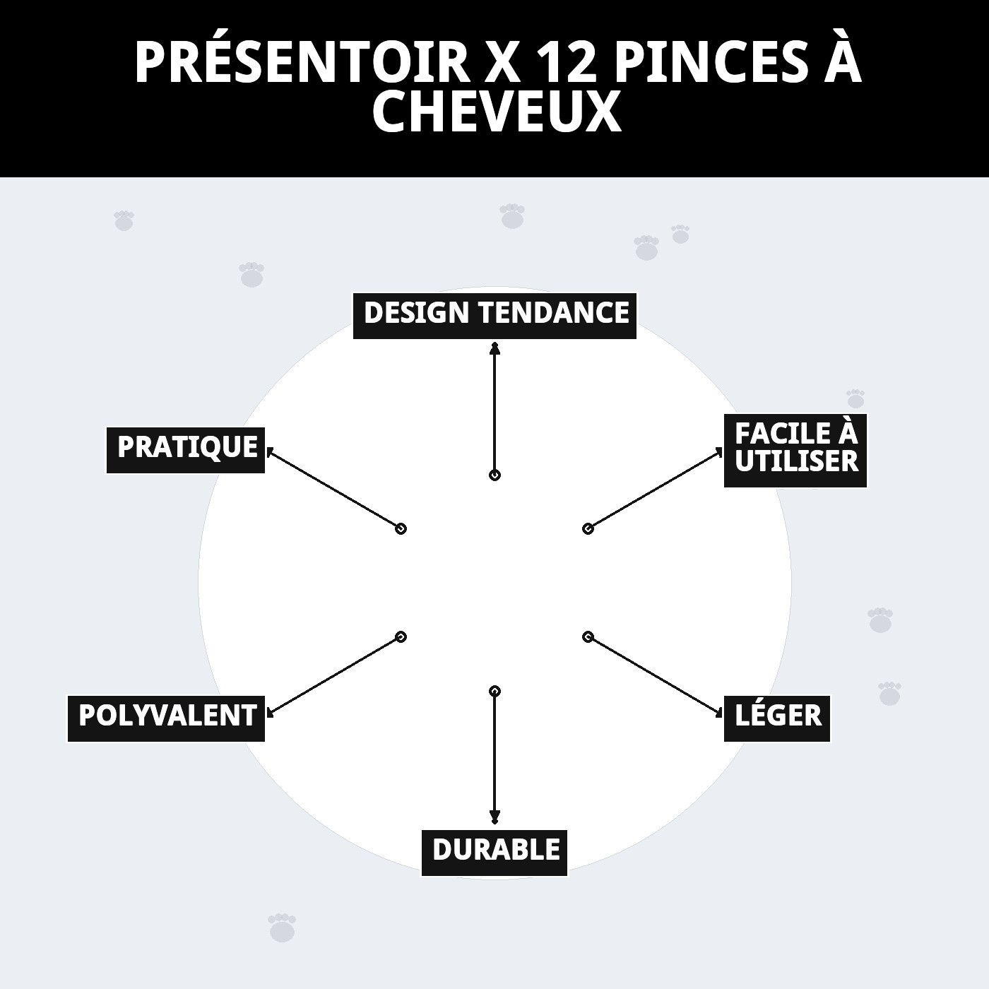 L'exposant x 12 clips pour les cheveux est une option idéale pour ceux qui recherchent un accessoire à la fois pratique et stylé. Ils garderont non seulement les cheveux de votre animal en place, mais ajouteront également une touche de plaisir à son look. Alors, qu'attendez-vous ? Procurez-vous votre exposant et laissez votre animal briller avec style !