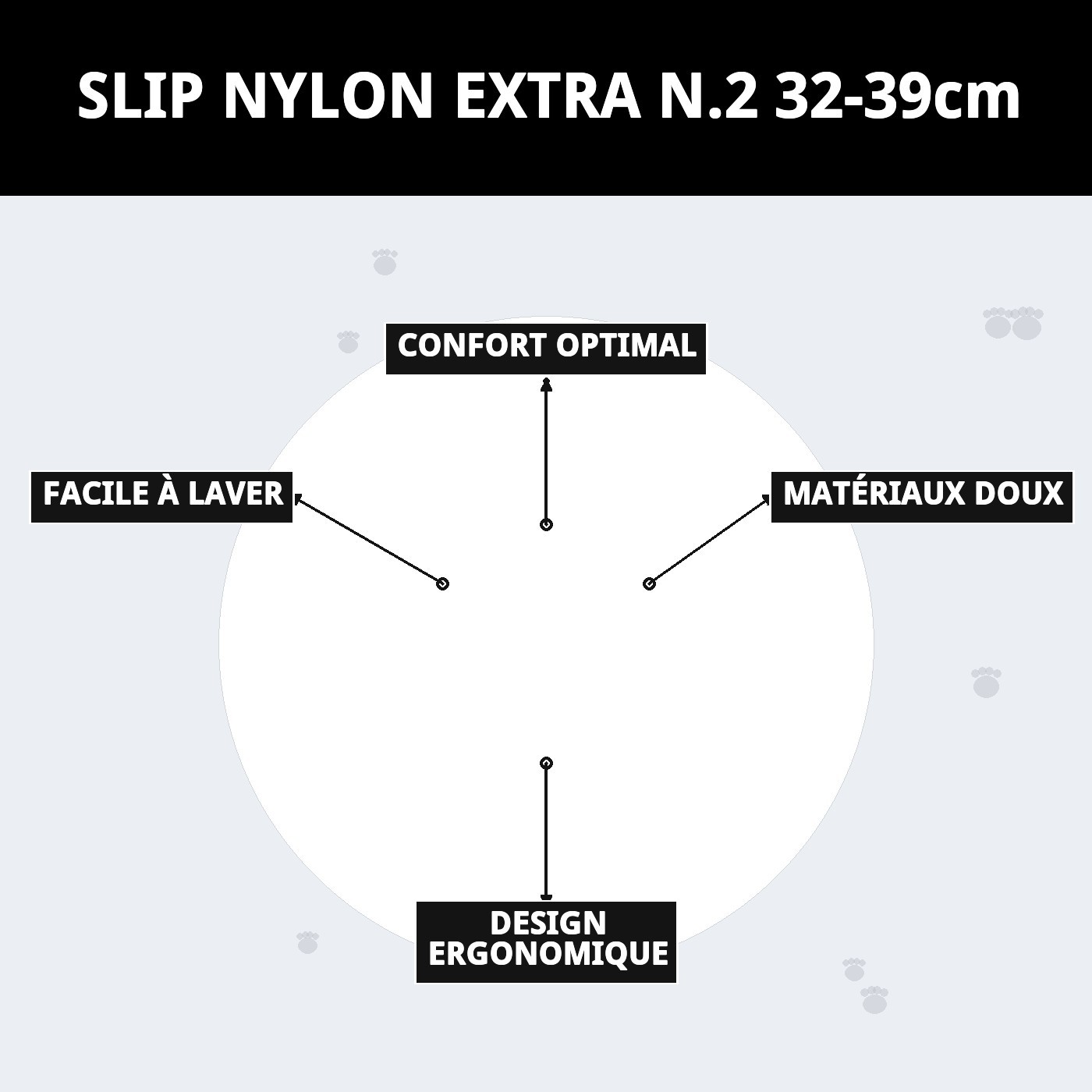 Le SLIP NYLON EXTRA N.2 est la solution idéale pour les jours de chaleur de votre chienne. Conçues comme des culottes confortables, elles évitent les taches à la maison, permettant à votre animal de compagnie de rester serein. Fabriquées avec des matériaux doux et lavables, elles sont parfaites pour maintenir l'hygiène et prendre soin de sa peau. Une option pratique et respectueuse !