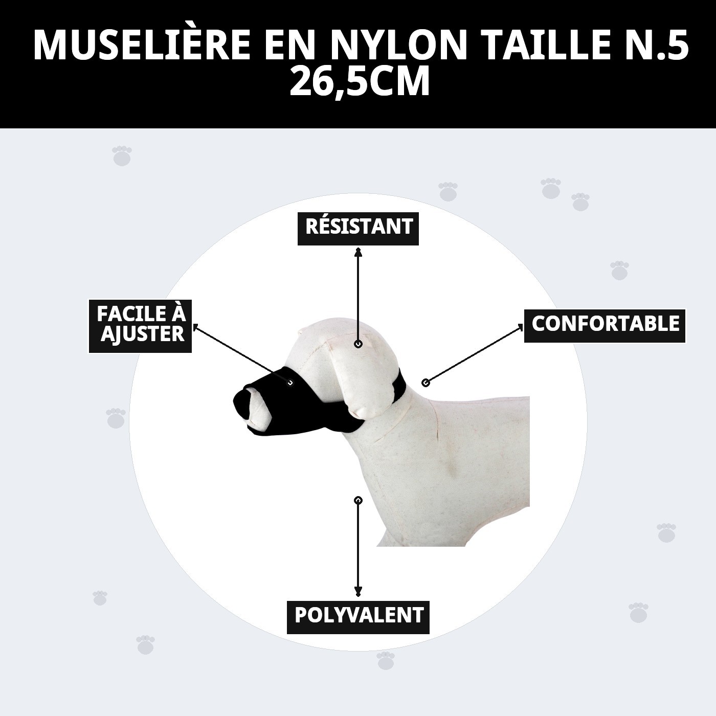 Le muselière en nylon taille N.5 de Moly est l'option idéale pour garantir la sécurité de votre chien. Son design robuste s'adapte confortablement à différentes races, permettant à votre animal de boire de l'eau sans difficulté. Cette muselière est facile à transporter et s'ajuste facilement au museau, facilitant l'adaptation pour votre compagnon à quatre pattes.