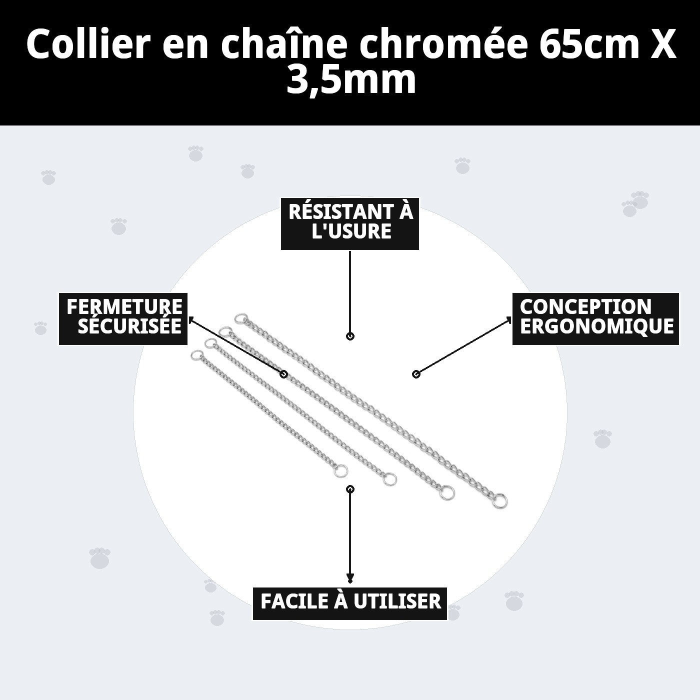 Caractéristiques du collier chaîne chromé 65cm x 3,5mm