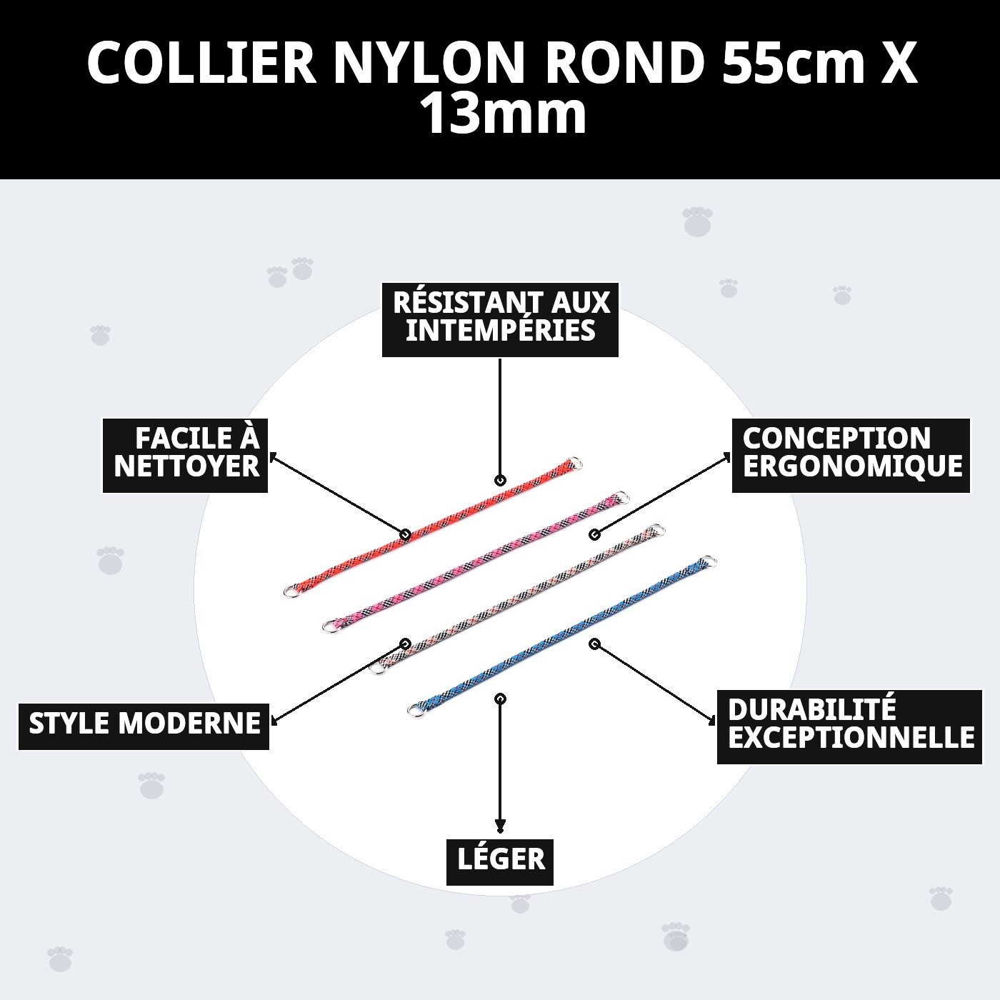 COLLIER NYLON ROND 55cm X 13mm