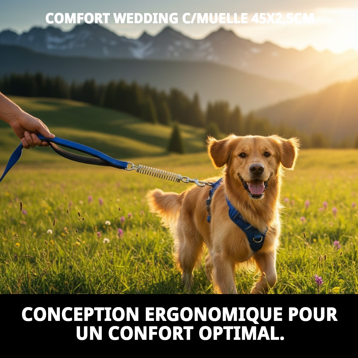 La poignée confort c/ressort mesure 45cm de long et 2,5cm de large, ce qui la rend suffisamment compacte pour être emportée partout, mais aussi suffisamment résistante pour gérer un grand chien. Cet équilibre est essentiel pour que vous puissiez profiter de la promenade sans complications.
