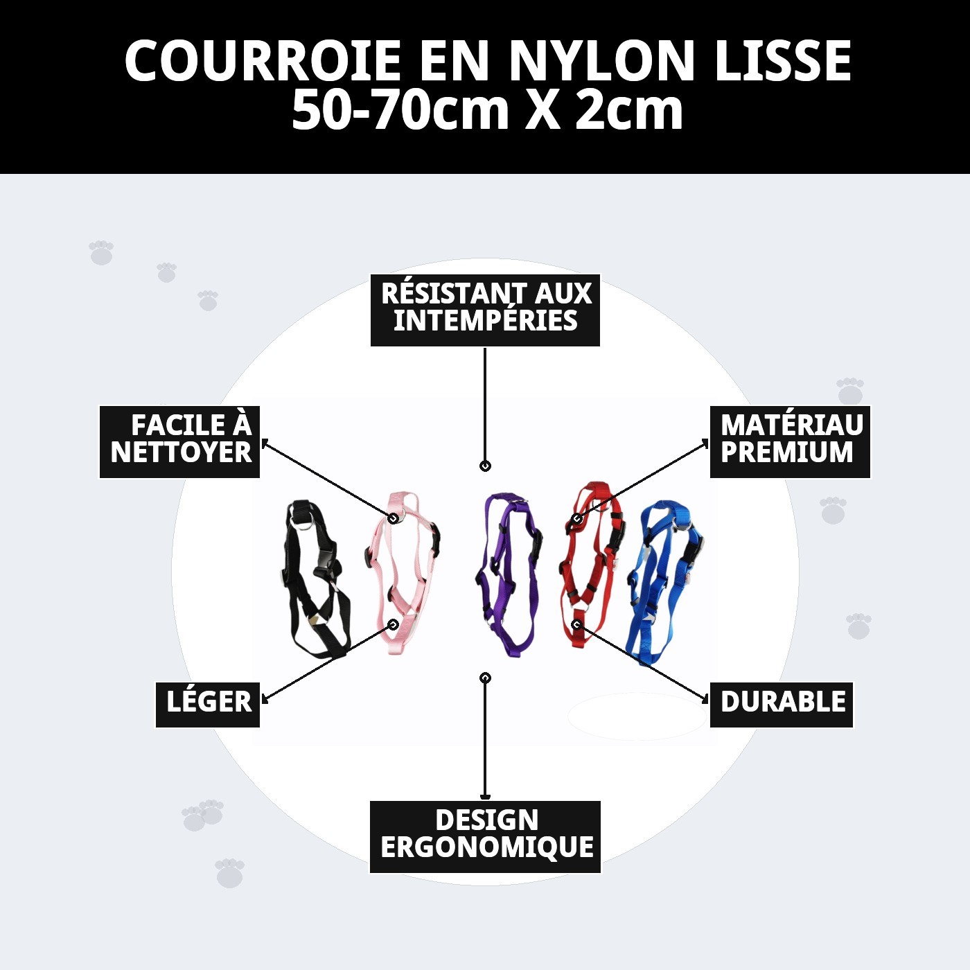 Parfois, l'apparence compte aussi. Le harnais en nylon lisse est disponible en plusieurs couleurs, ce qui permet de personnaliser le style de votre animal. Choisir un harnais qui correspond à sa personnalité peut rendre les sorties encore plus amusantes. Je me souviens d'une fois au parc, où mon chien a attiré tous les regards grâce à son nouveau harnais brillant. Il était une véritable star !