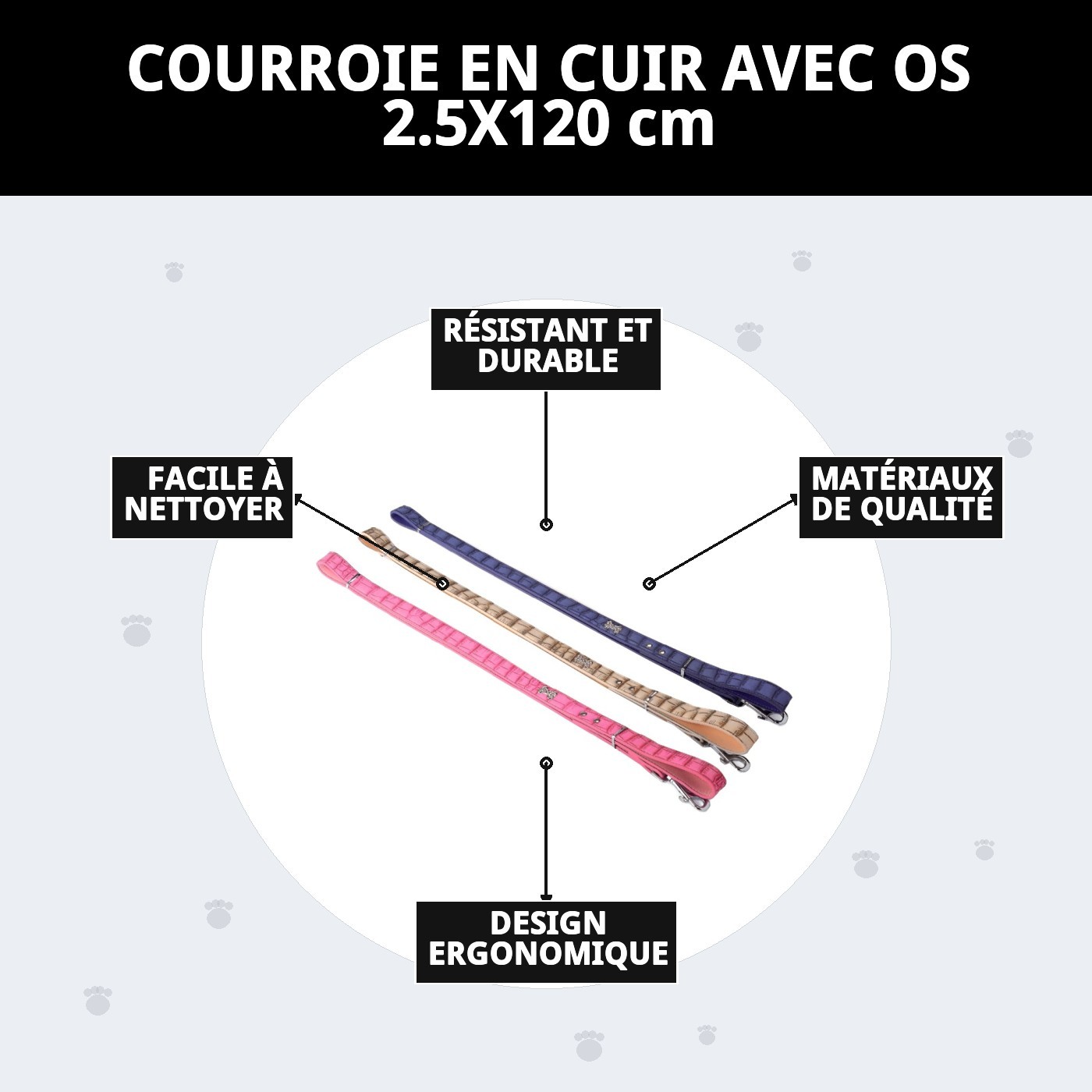 Découvrez la laisse en cuir avec os de 2,5x120 cm, parfaite pour promener votre animal de compagnie avec style et confort. Fabriquée à partir de matériaux de haute qualité, cette laisse offre une prise en main ergonomique qui garantit une prise en main sécurisée. Ajoutez une touche d'élégance à vos promenades avec cet accessoire indispensable.