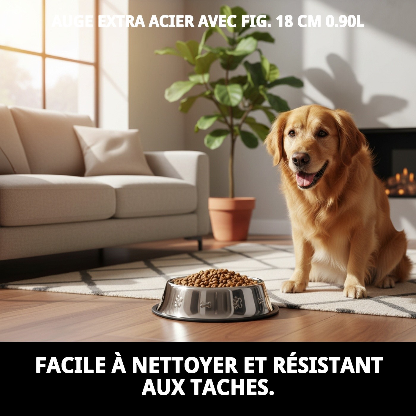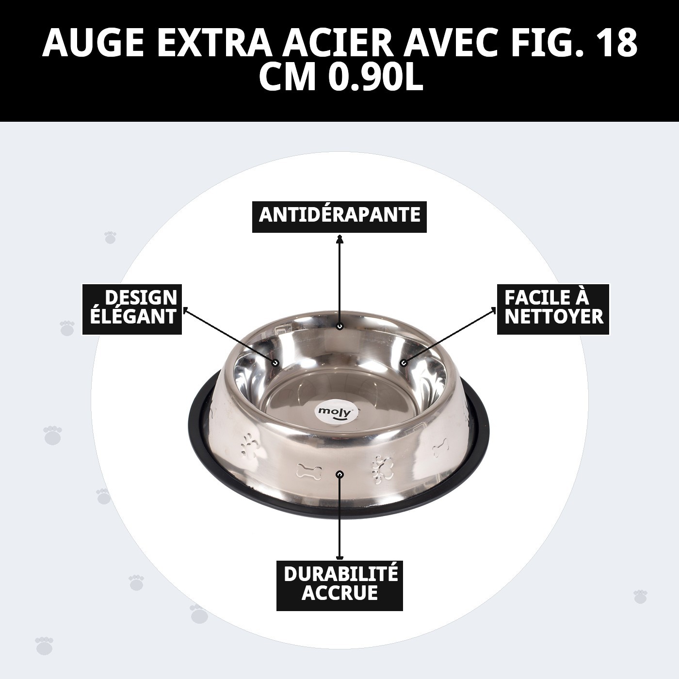 La gamelle en acier extra c/fig. 18 cm 0,90l est une excellente option pour ceux qui recherchent qualité, design et fonctionnalité. Avec son matériau résistant, son design attrayant et ses caractéristiques antidérapantes, c'est le complément parfait pour l'heure du repas de votre animal. N'attendez plus et offrez à votre chien le meilleur !