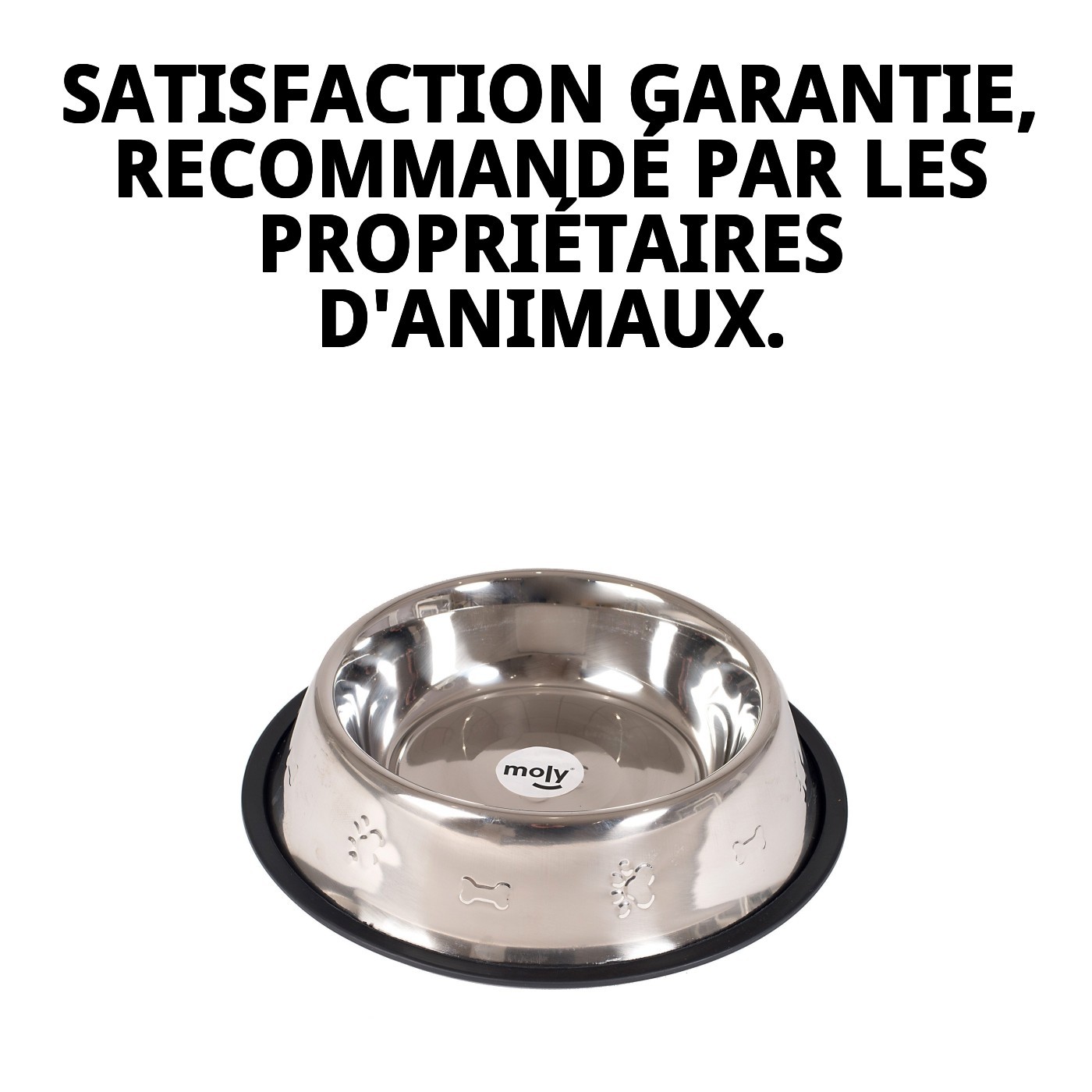 Cette gamelle en acier inoxydable se distingue pour plusieurs raisons. Tout d'abord, son matériau est non seulement résistant, mais aussi facile à nettoyer. Étant en acier inoxydable, vous pouvez être sûr que l'hygiène est garantie. De plus, la base est dotée d'un caoutchouc amovible qui empêche la gamelle de glisser pendant que votre animal mange. Pouvez-vous imaginer votre ami à fourrure profitant de son repas sans que le bol ne bouge ? C'est parfait !