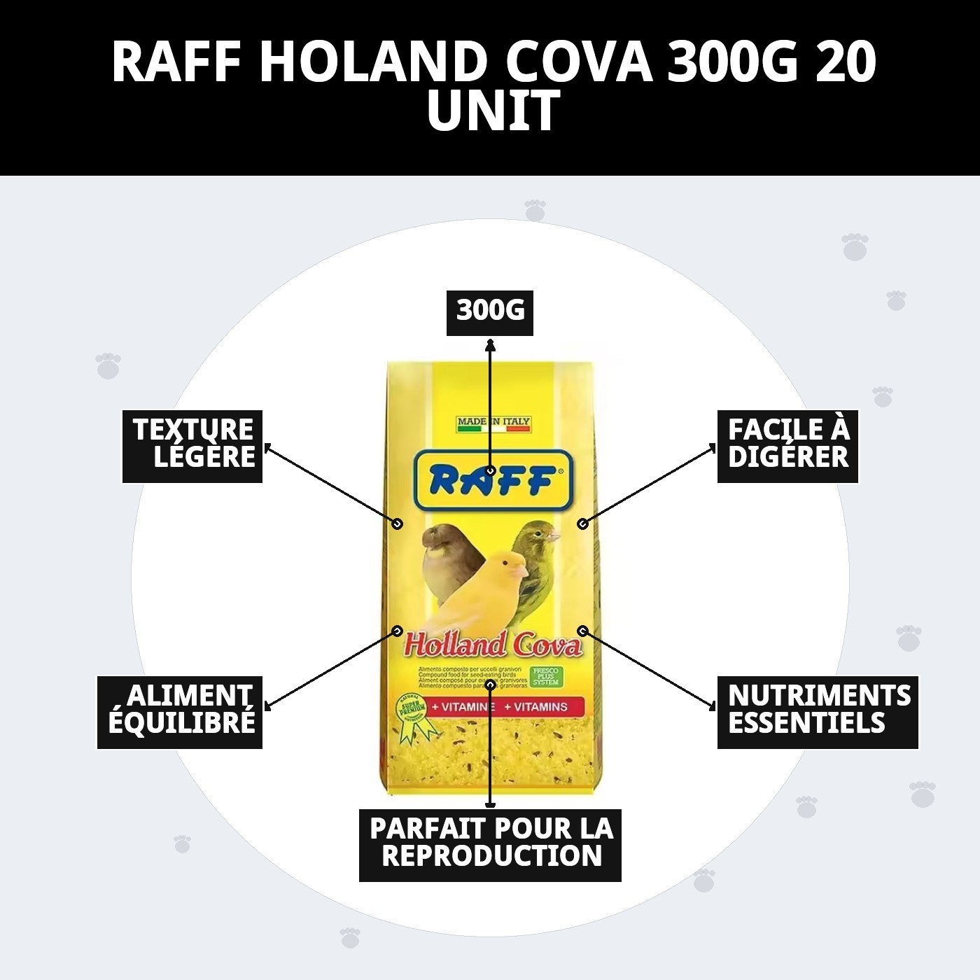 RAFF HOLAND COVA 300G 20 UNIT se traduce al francés como: RAFF HOLAND COVA 300G 20 UNIT (la traducción se mantiene igual, ya qu