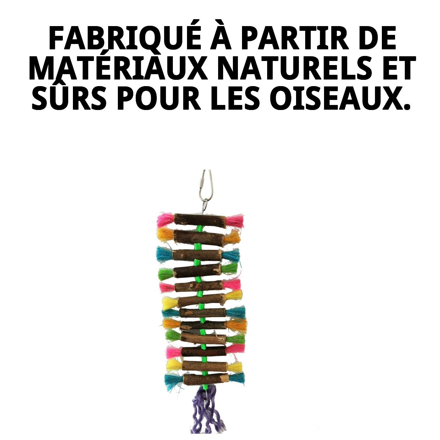 Lorsque vos oiseaux utilisent leur bec pour user les fibres colorées, ils s'amusent tout en prenant soin de leur bec et en prévenant des problèmes dentaires. Ainsi, vous savez maintenant qu'un jouet peut non seulement divertir, mais aussi veiller à leur santé.