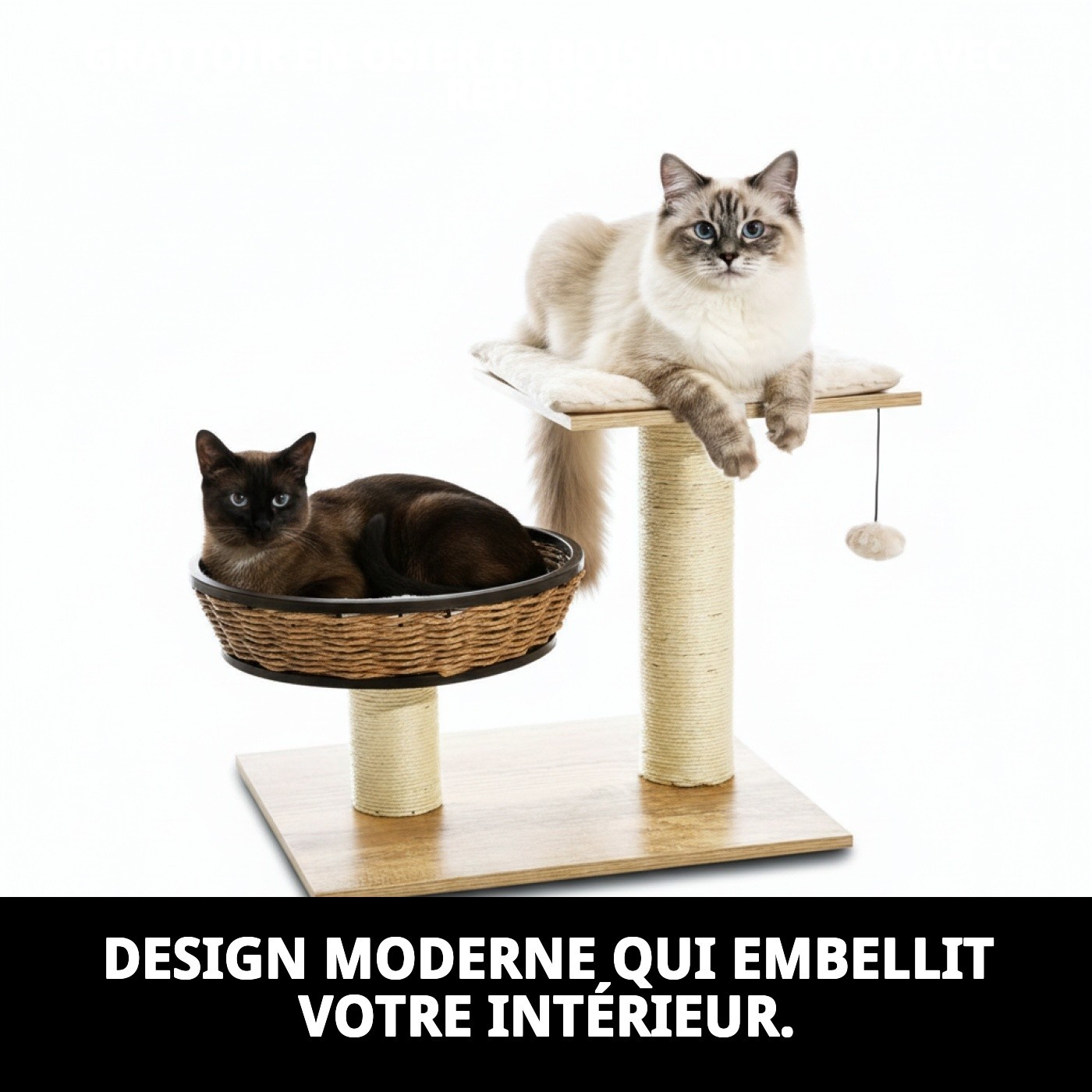 Si quelque chose que nos félins adorent, c'est d'avoir un espace propre où gratter, jouer et se reposer. C'est pourquoi aujourd'hui, je veux te parler d'un produit que j'ai découvert et qui a révolutionné la vie de mon chat : le grattoir en osier et bois mod. Tokyo avec repos 48. Ce grattoir n'est pas seulement fonctionnel, mais il ajoute également une touche de style à la décoration de ta maison.