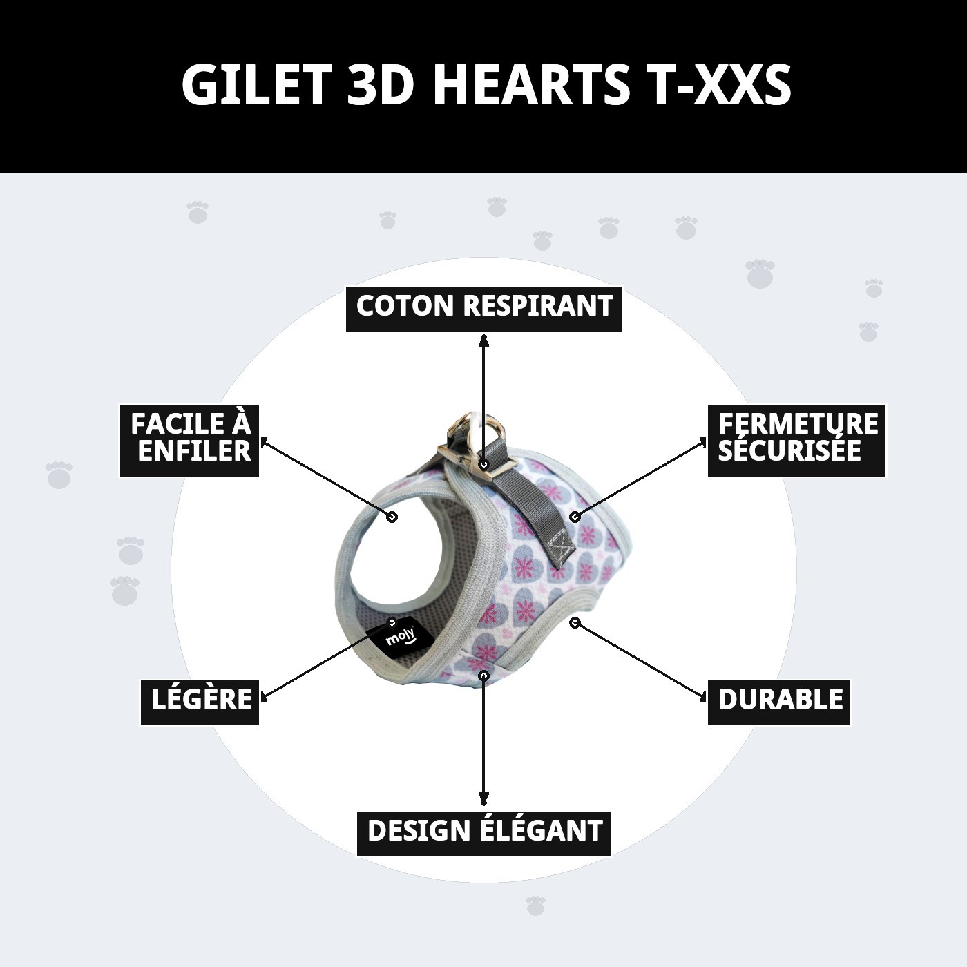 Le gilet 3D cœurs T-XXS est le choix parfait pour votre animal de compagnie. Fabriqué en coton respirant, il s'adapte à ses besoins, garantissant son bien-être et son confort. De plus, sa fermeture métallique offre une sécurité supplémentaire, idéale pour que votre compagnon à quatre pattes se sente protégé à tout moment.