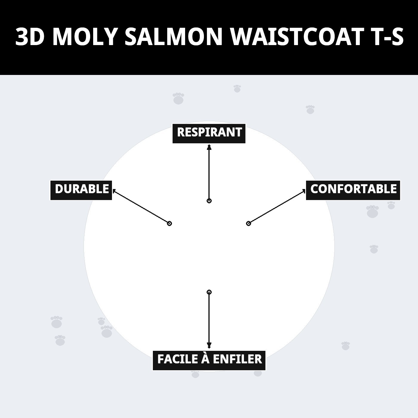 Le gilet 3D Moly Salmon T-S est un excellent investissement pour le bien-être et le style de votre animal. Peu importe si vous prévoyez une longue promenade ou si vous voulez simplement que votre compagnon soit à l'aise à la maison, ce gilet a tout ce dont vous avez besoin. Faites en sorte que votre animal se sente spécial et choisissez ce magnifique gilet dès aujourd'hui !