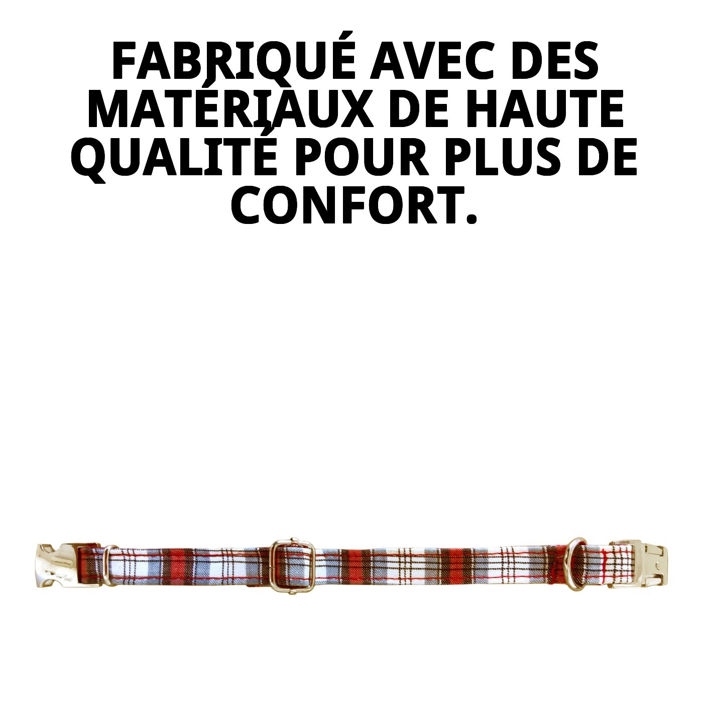 Le collier écossais T-4 se présente avec un design classique qui ne se démode jamais. Avec son imprimé tartan, ce collier offre une esthétique élégante et intemporelle qui fera ressortir votre chien à chaque promenade. Avez-vous déjà remarqué comment un bon accessoire peut changer la perception que vous avez de votre animal ? C'est comme si le collier avait sa propre personnalité, et votre chien devient le centre d'attention au parc.