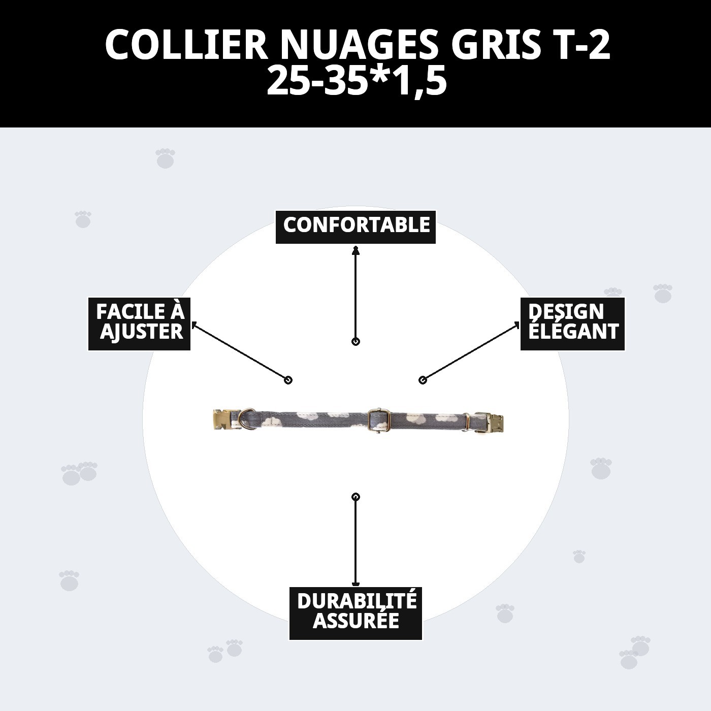 Alors, tu sais maintenant, si tu cherches un collier qui allie style, confort et sécurité, n'hésite pas à considérer le collier nuages gris T-2 25-35*1,5. Ton animal te remerciera et tu apprécieras son élégance. Tu ne regretteras pas ce choix !