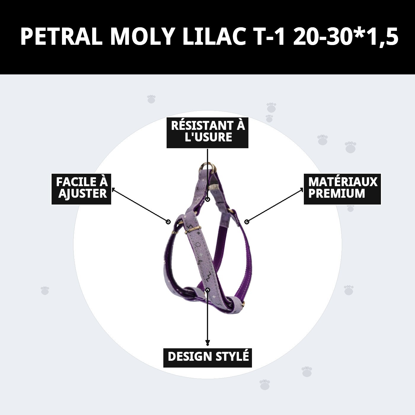 Le harnais Moly lilas T-1 est conçu avec le confort et la sécurité de votre animal à l'esprit. J'ai remarqué que son ajustement est assez polyvalent, car il peut s'adapter d'un tour de poitrine de 20 à 30 cm, ce qui le rend idéal pour les chiens de différentes tailles. De plus, sa largeur de 1,5 cm offre un équilibre parfait entre résistance et légèreté.