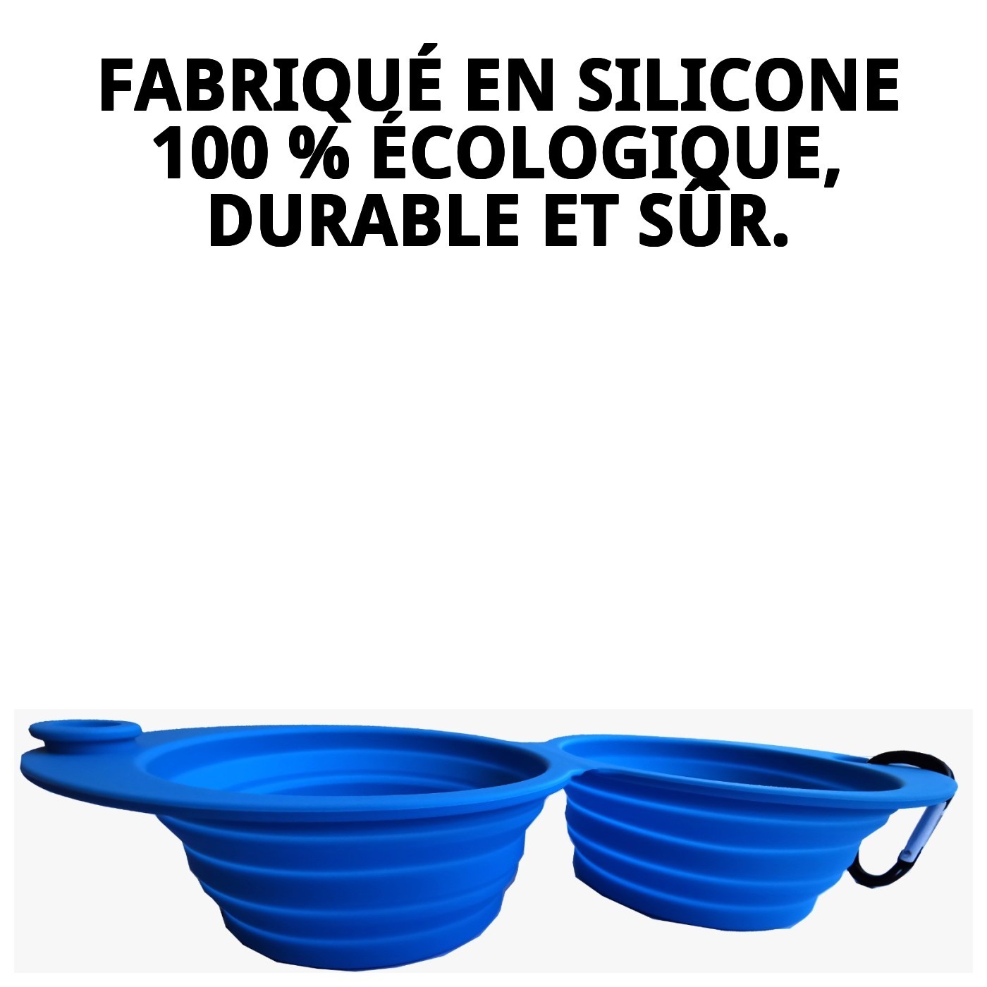 Le bol de nourriture double pliable en silicone 350ml est idéal pour les amoureux de l'aventure avec leur animal de compagnie. Fabriqué à 100 % en silicone, il est écologique et se plie facilement, prenant peu de place. De plus, il est équipé d'un mousqueton qui permet de l'accrocher à n'importe quel sac à dos ou laisse. Profitez de chaque moment avec votre compagnon à quatre pattes !