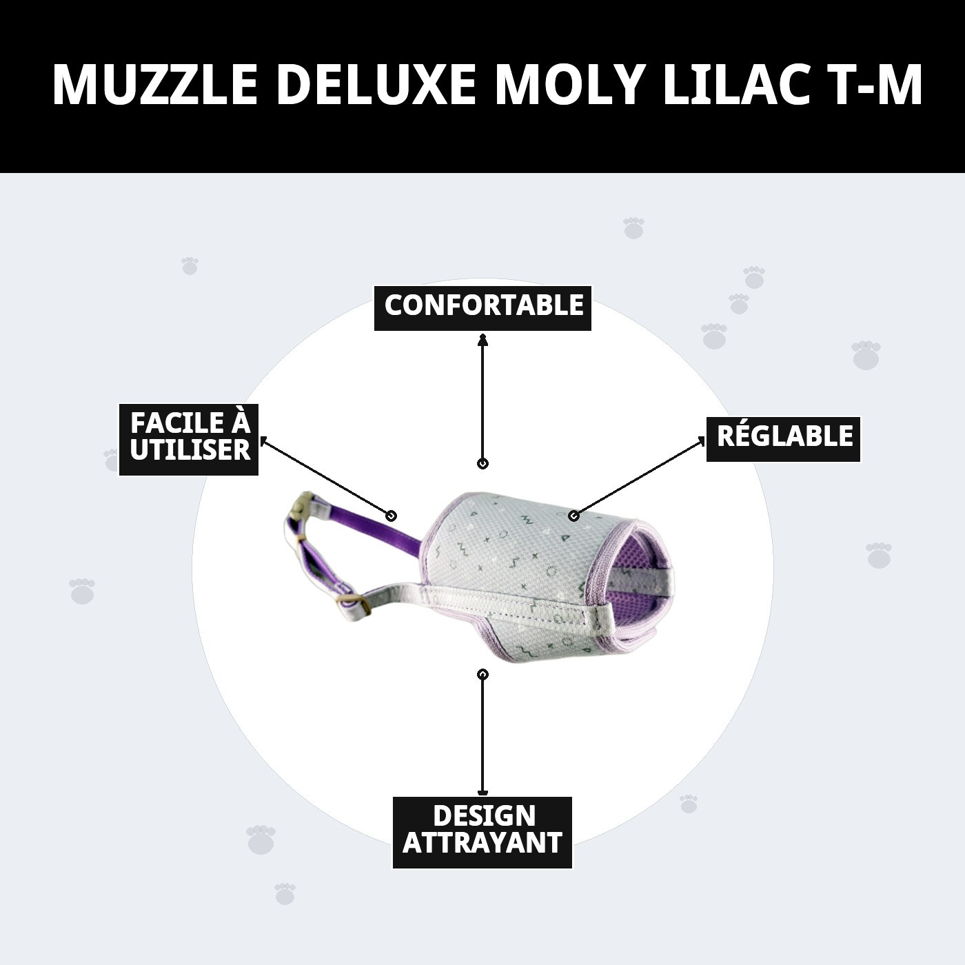 BOZAL DELUXE MOLY LILA T-M se traduce al francés como : MUSEAU DELUXE MOLY LILA T-M.
