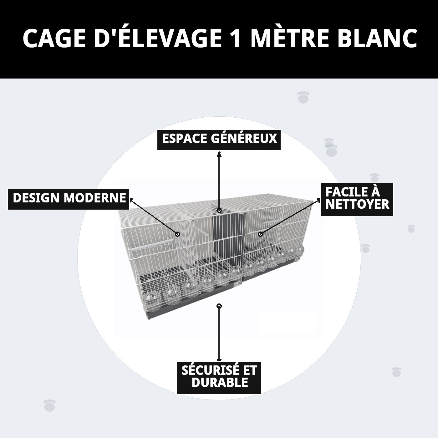La volière de reproduction d'un mètre blanche n'est pas seulement fonctionnelle, mais elle est également un élément décoratif dans votre maison. Son design élégant et moderne s'adapte à tout espace, devenant un attrait visuel qui complète votre décoration. N'hésitez pas à ajouter des jouets et des accessoires colorés pour qu'elle soit encore plus joyeuse !