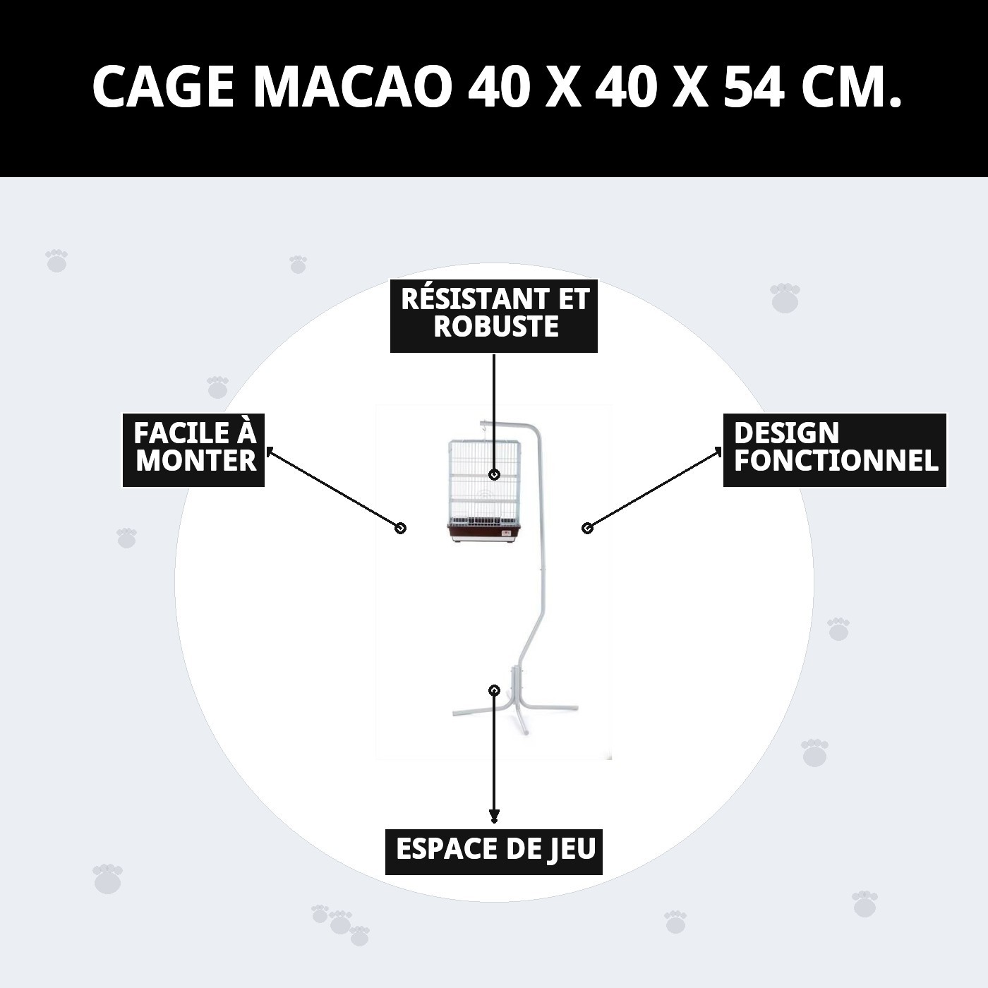 La cage Macao a été conçue spécifiquement pour offrir confort et sécurité à vos oiseaux. Avec des dimensions de 40 x 40 x 54 cm, elle est idéale pour les espèces petites et moyennes. Sa structure robuste et ses matériaux de haute qualité garantissent que votre animal est protégé de tout danger.