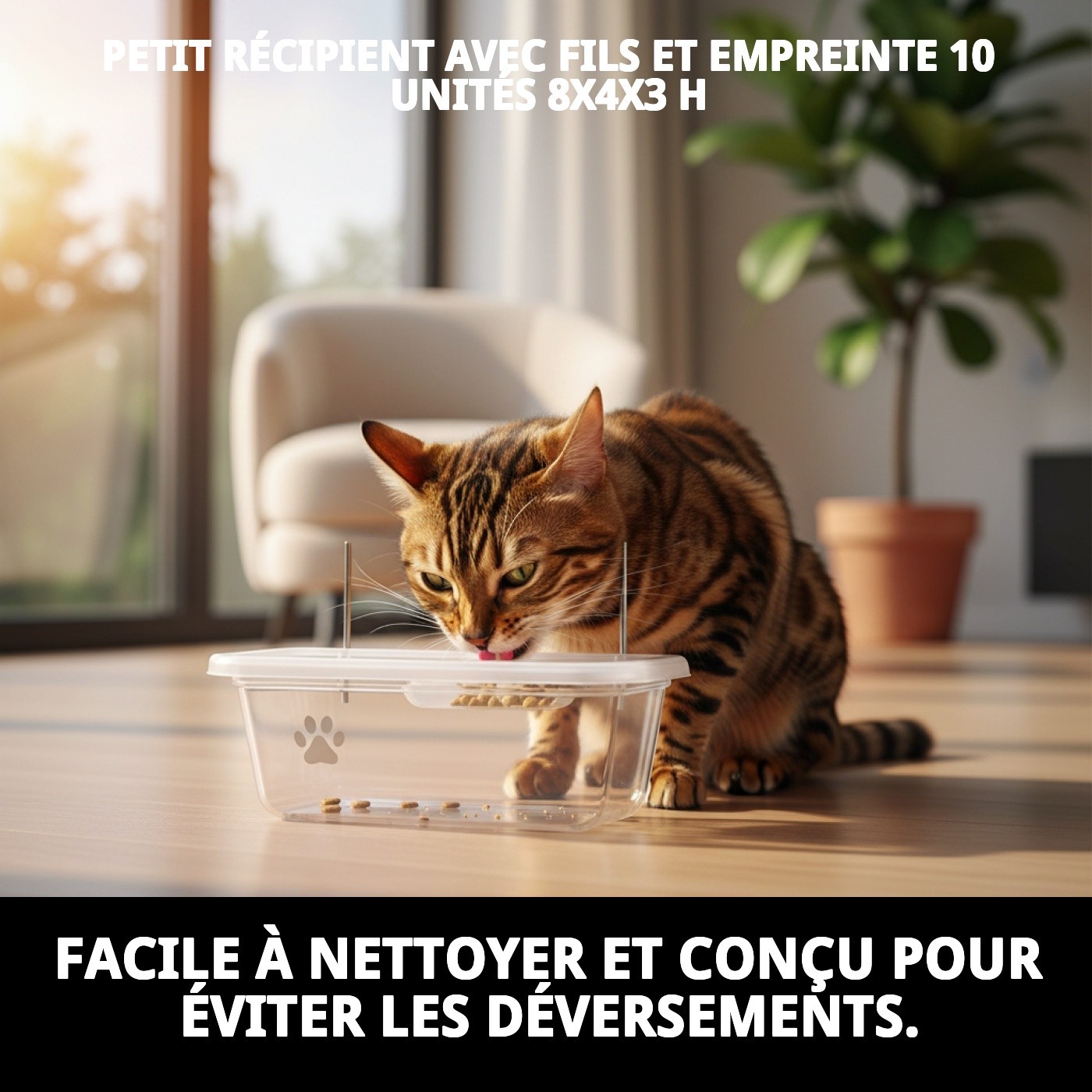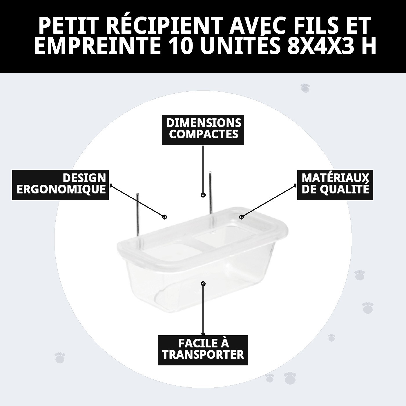 Le **petit mangeoire avec fils et empreinte** est idéal pour les animaux de compagnie les plus petits. Avec des dimensions de 8x4x3 cm, cet accessoire pratique garantit que votre compagnon profite de son repas sans déversements. Son design attrayant et fonctionnel en fait un excellent choix pour votre maison. Faites de l'heure du repas un moment spécial !