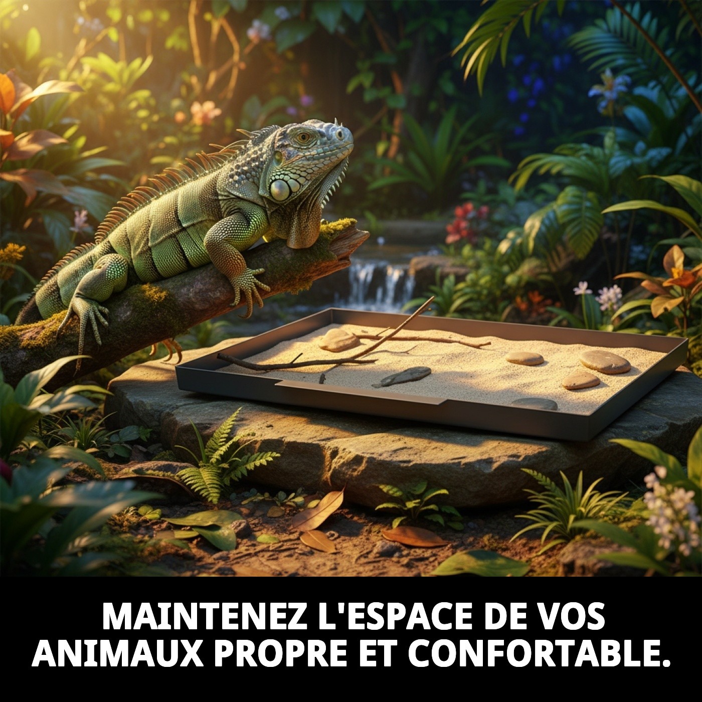 - Nettoyez le bac au moins une fois par semaine : Même s'il est facile à nettoyer, n'oubliez pas que l'hygiène est essentielle pour la santé de vos animaux.