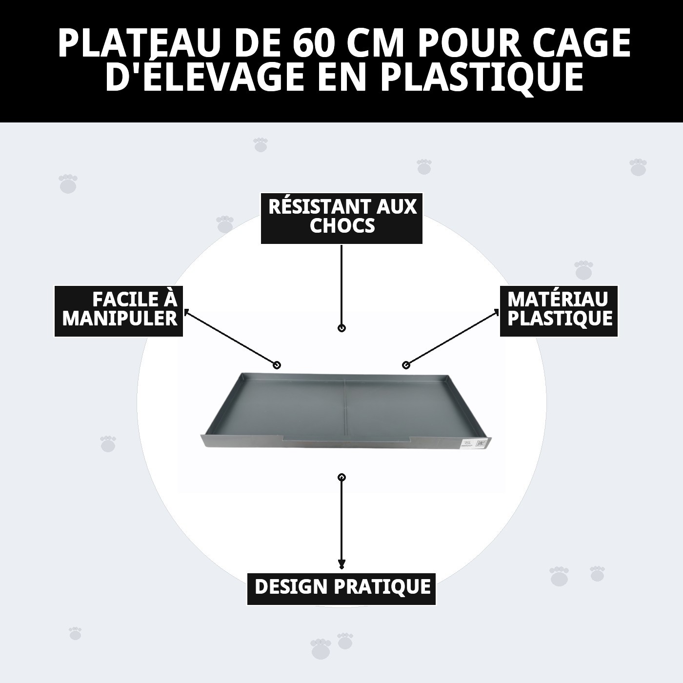 La plateau en plastique pour cage de reproduction 60 cm est idéale pour garder l'espace de vos animaux de compagnie propre et bien rangé. Son design robuste garantit une durabilité, tandis que sa taille s'adapte à différentes cages. De plus, sa facilité de nettoyage vous permettra de passer plus de temps à profiter de vos compagnons à fourrure et moins à faire le ménage.