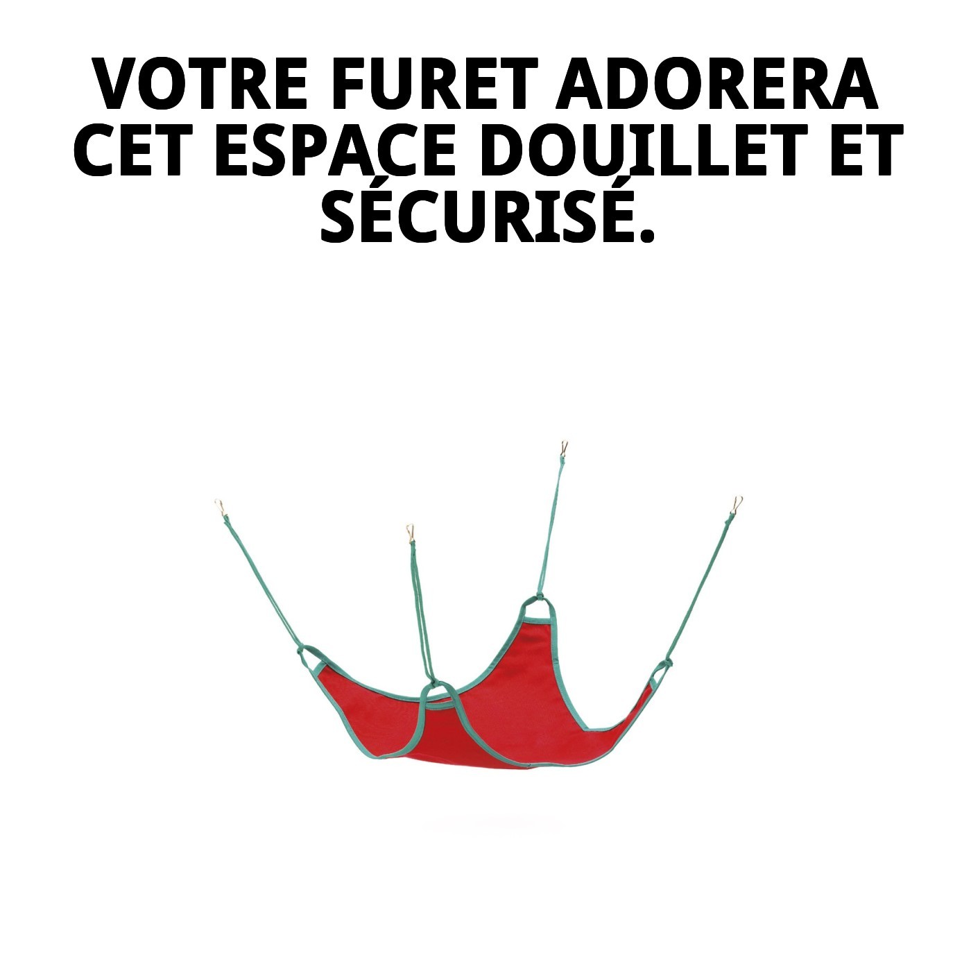 - Confort et sécurité : Les furets sont des animaux qui recherchent des endroits où ils se sentent protégés. Un hamac leur offre cet espace où ils peuvent dormir paisiblement.