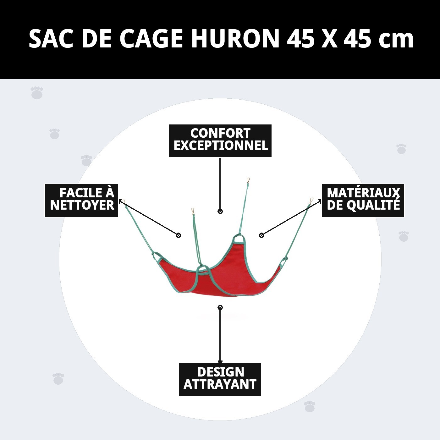 Fabriqué avec des matériaux doux et résistants, ce hamac est conçu pour supporter l'agitation de votre furet. Le tissu est facile à nettoyer, ce qui vous fera gagner du temps et des efforts en matière d'entretien. De plus, sa taille de 45 x 45 cm permet à plusieurs furets d'en profiter en même temps, favorisant la socialisation entre eux. Imaginez vos petits s'amusant ensemble dans leur hamac !