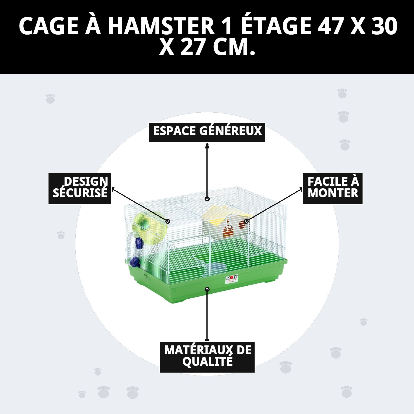 CAGE POUR HAMSTER 1 ÉTAGE 47 X 30 X 27 CM.